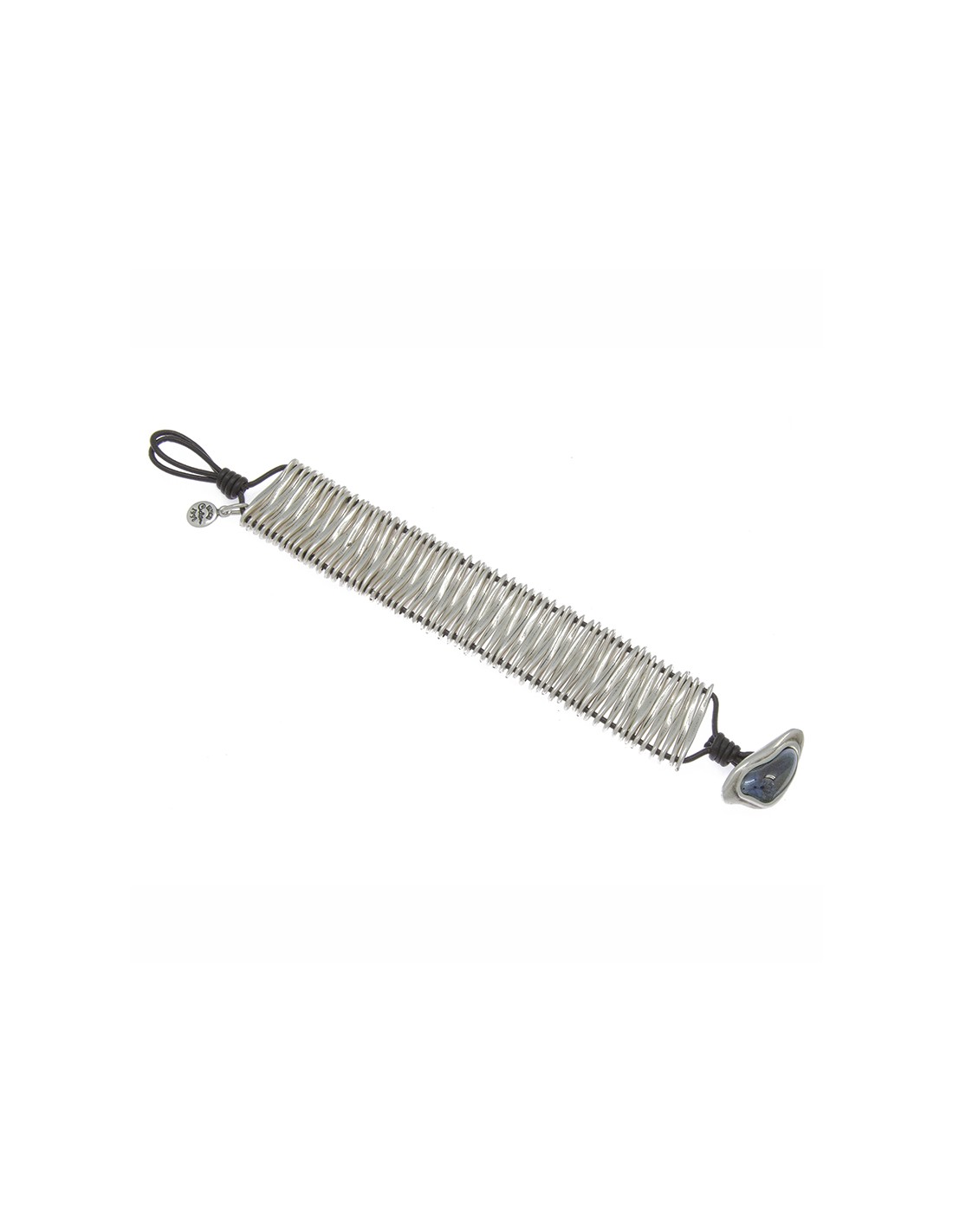Pulsera con vueltas de cordones de cuero combinados con elementos metálicos bañados en Plata. Un original diseño con toda la personalidad de Ciclón hecho de manera artesanal en nuestras instalaciones de Madrid.Nuestros controles de calidad en componentes y baños garantizan todas nuestras piezas durante 2 años.