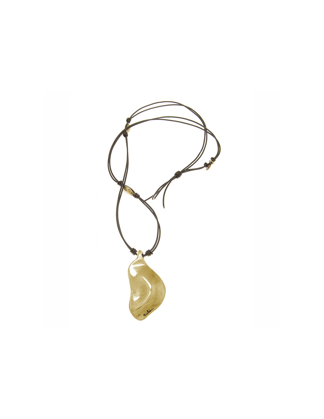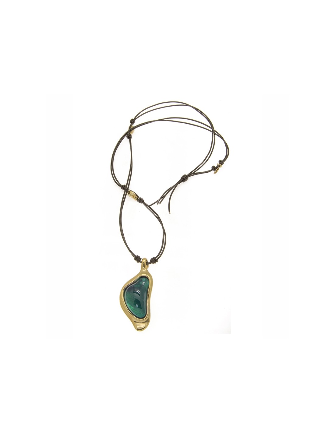 COLLAR LARGO CON CUERO ORO811