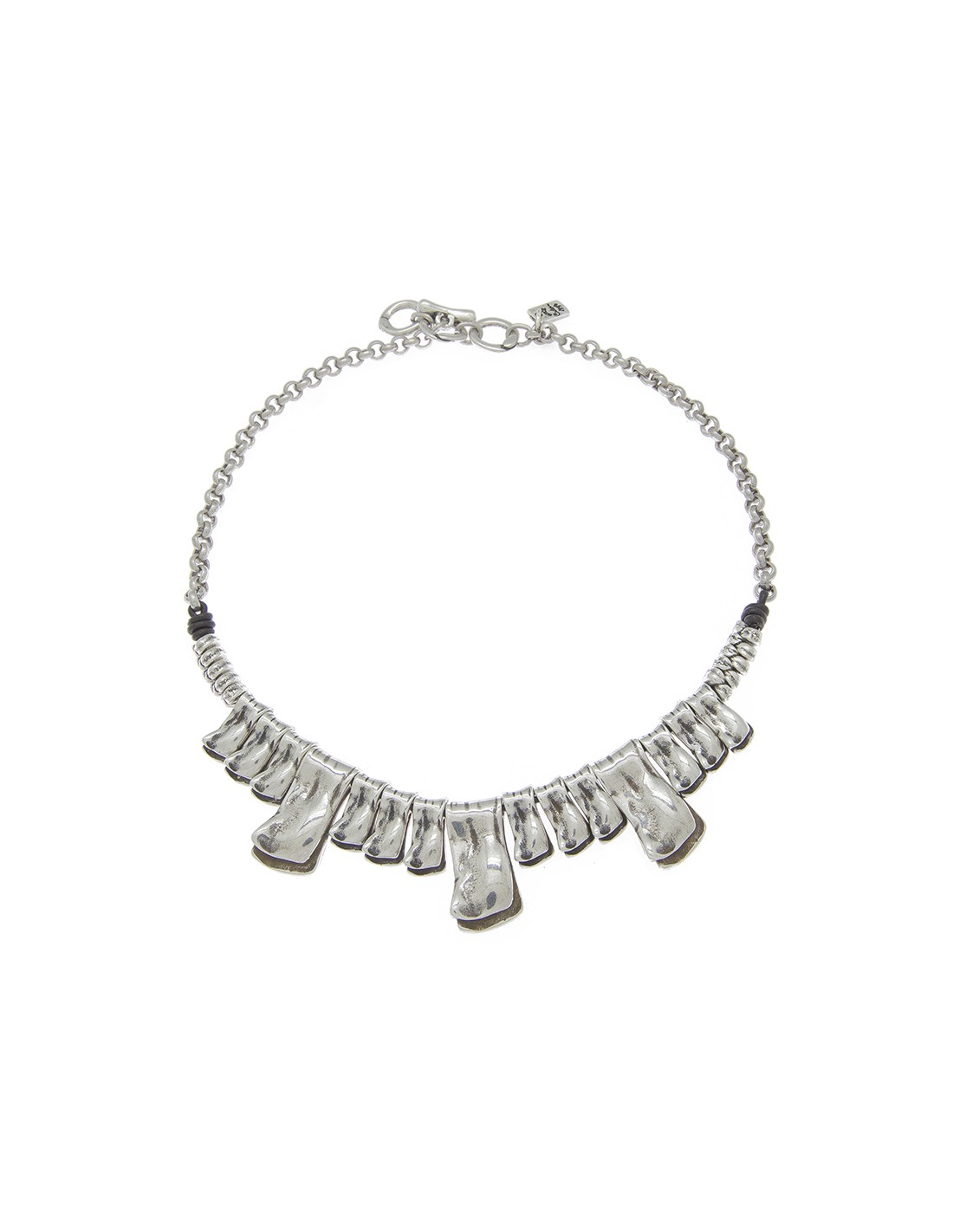 Collar de mujer, cuentas nudo con colgante de pergamino macizo de metal con baño de plata en distintos tamaños, o combinación con cristal de murano. Un diseño original de la firma. Como todos sus diseños, esta elaborado de forma totalmente artesanal en España.