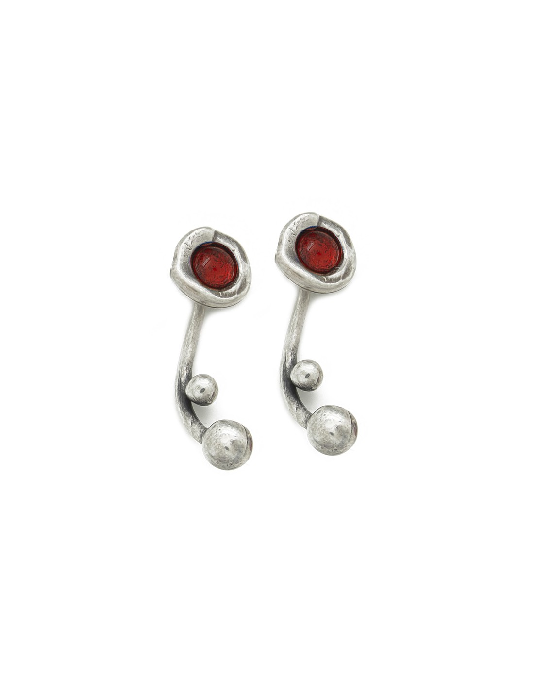 Pendientes cortos elaborados con piezas de metal bañado en plata y cristales de Murano. Puedes elegir estos pendientes en diferentes colores. Diseñado especialmente para ti por Ciclón y realizado de manera artesanal en nuestras instalaciones de España. Nuestros controles de calidad en componentes y baños garantizan todas nuestras piezas durante 2 años
