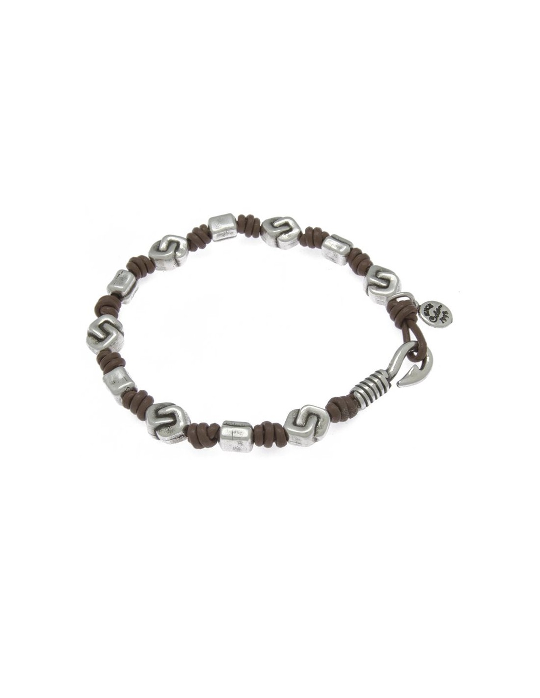 Pulsera en metal bañado en plata y cuero, nudos y piezas metálicas bañadas en plata en un original diseño con toda la personalidad de Ciclón hecho de manera artesanal 100% en nuestras instalaciones de Madrid.