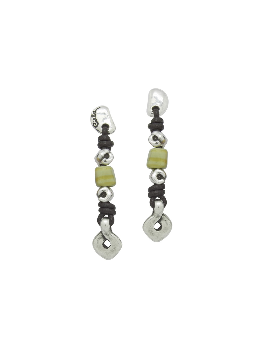 Pendientes largos de metal bañados en plata diseñados para la colección PARADISE, disponible también con cristal artesanal de Murano en varios colores. Un diseño característico de Ciclón hecho a mano en nuestras instalaciones de España. Nuestros controles de calidad en componentes y baños garantizan todas nuestras piezas durante 2 años.