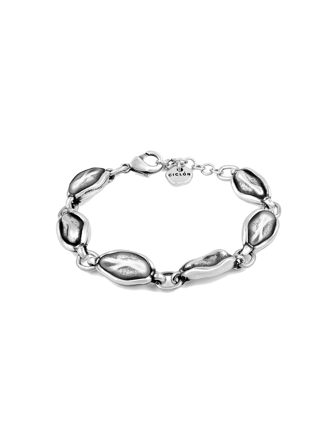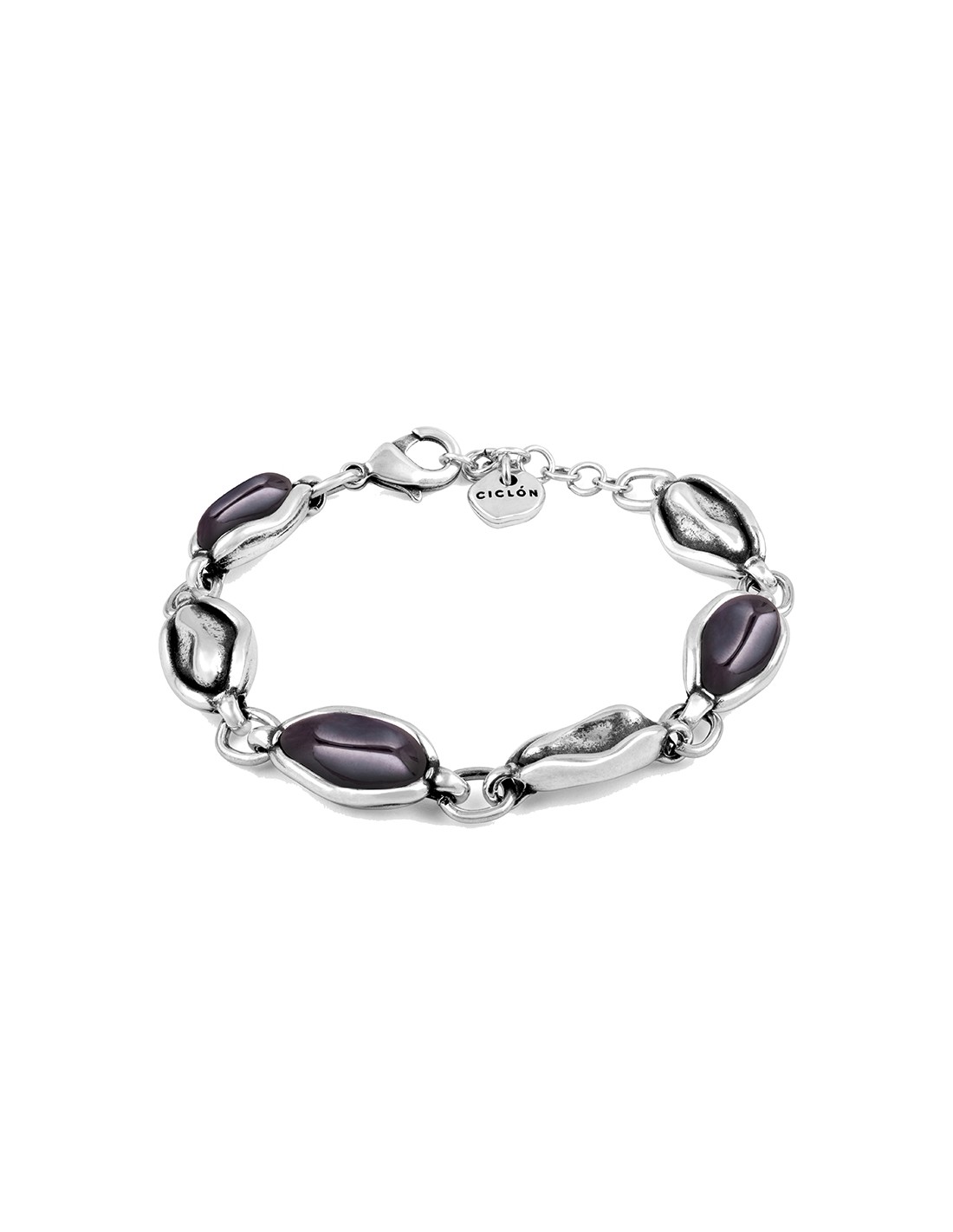 Pulsera de entrepiezas en metal bañado en plata y cristal artesanal de Murano de diferentes tonos. Un original diseño con toda la personalidad de Ciclón hecho de manera artesanal 100% en nuestras instalaciones de España.Nuestros controles de calidad en componentes y baños garantizan todas nuestras piezas durante 2 años.