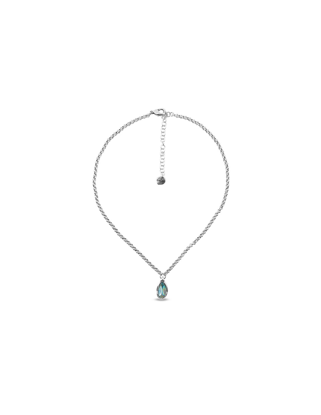 Collar corto, cadena de metal bañada en plata, con colgante central en metal bañado en plata,  también en combinación con cristales artesanales de Murano en diferentes tonos. Una creación original de Ciclón, realizada de forma artesanal en España. Nuestros controles de calidad en componentes y baños garantizan todas nuestras piezas durante 2 años