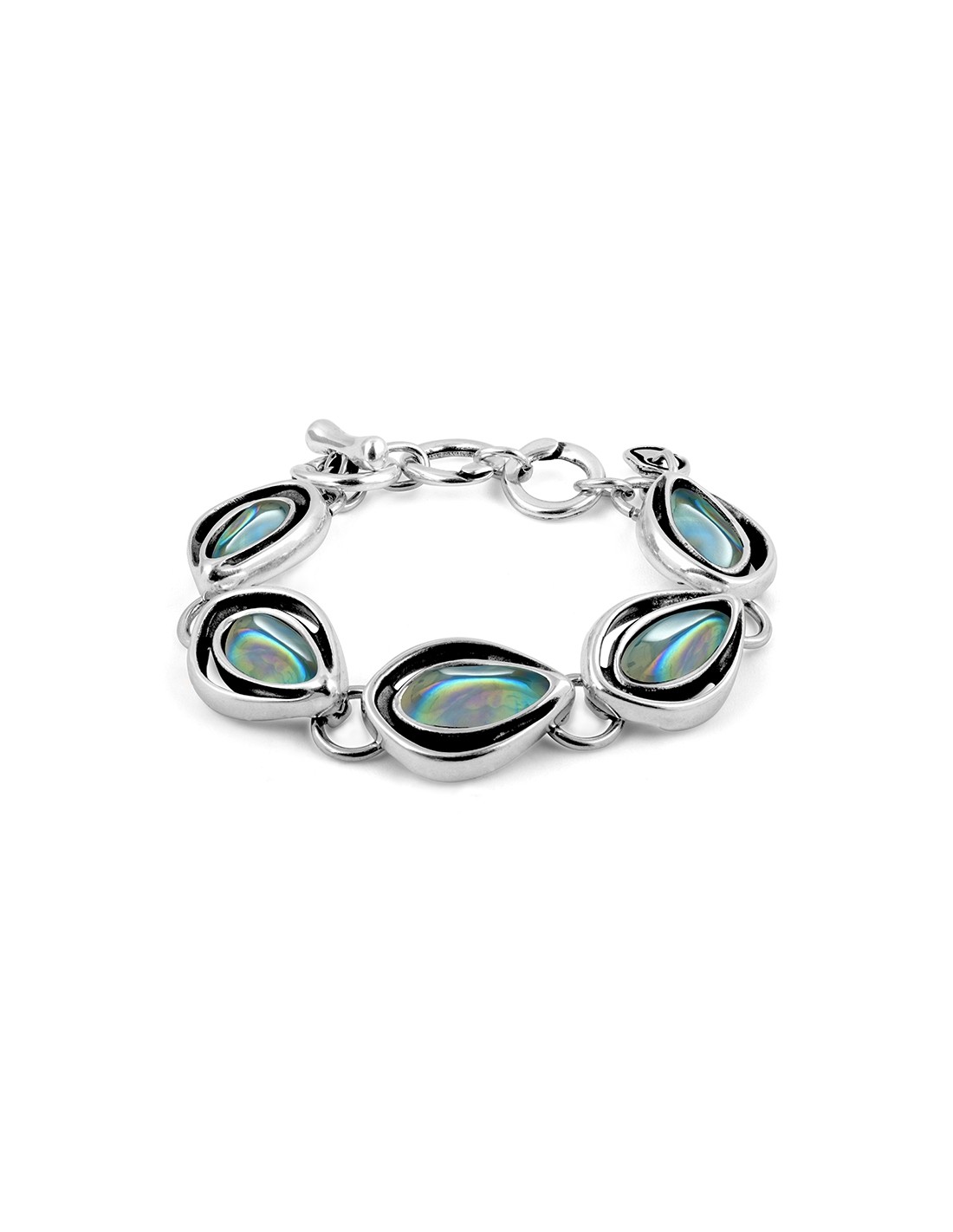 Pulsera realizada con entrepiezas de metal bañado en plata y cristal artesanal de Murano de diferentes formas y tamaños. Un original diseño con toda la personalidad de Ciclón hecho de manera artesanal 100% en nuestras instalaciones de España. Nuestros controles de calidad en componentes y baños garantizan todas nuestras piezas durante 2 años.