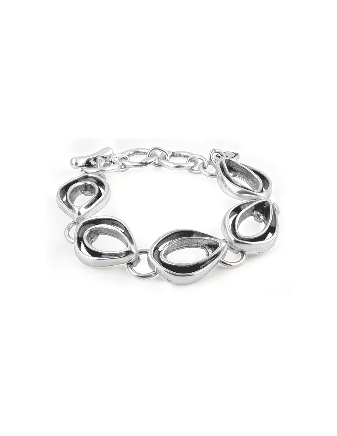 Pulsera metálica bañada en plata. Un original diseño con toda la personalidad de Ciclón hecho de manera artesanal en nuestras instalaciones de Madrid. Nuestros controles de calidad en componentes y baños garantizan todas nuestras piezas durante 2 años.