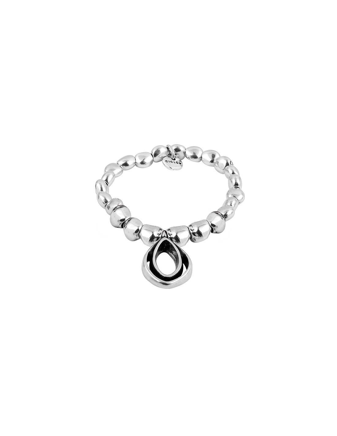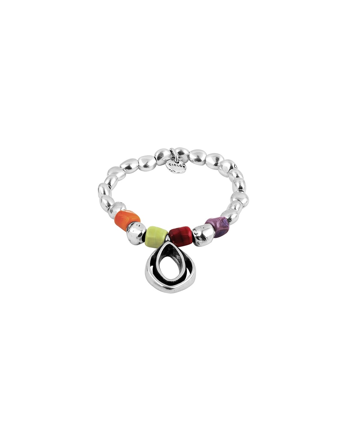Pulsera elástica en metal bañado en Plata formada por piezas nudo en metal bañado en plata, también combinación de colores en cristal artesanal de Murano. Un original diseño con toda la personalidad de Ciclón hecho de manera artesanal en nuestras instalaciones de Madrid. Nuestros controles de calidad en componentes y baños garantizan todas nuestras piezas durante 2 años.