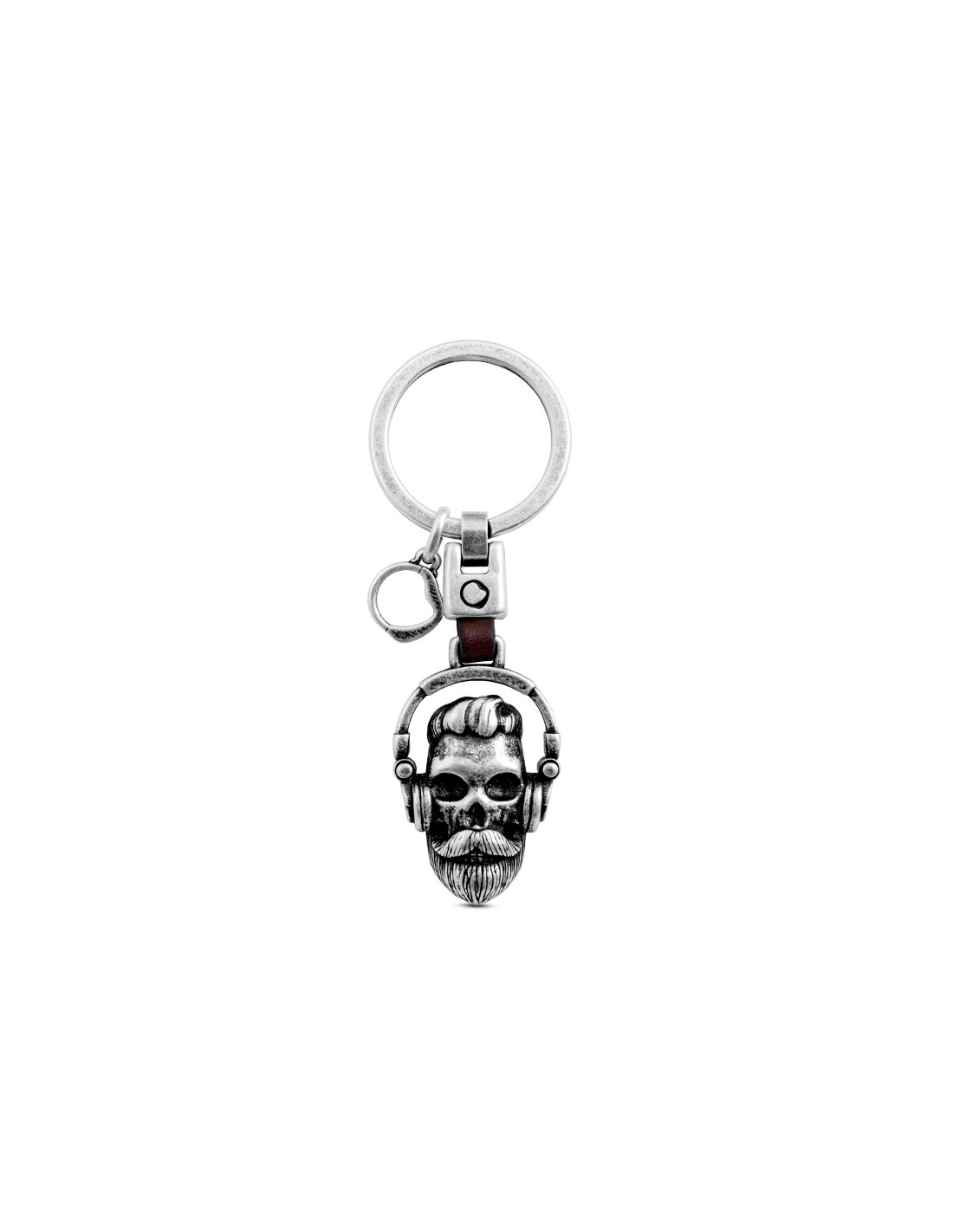 Llavero de hombre con diseño de cara de hombre con estilo hipster. Fabricado en metal bañado en plata.