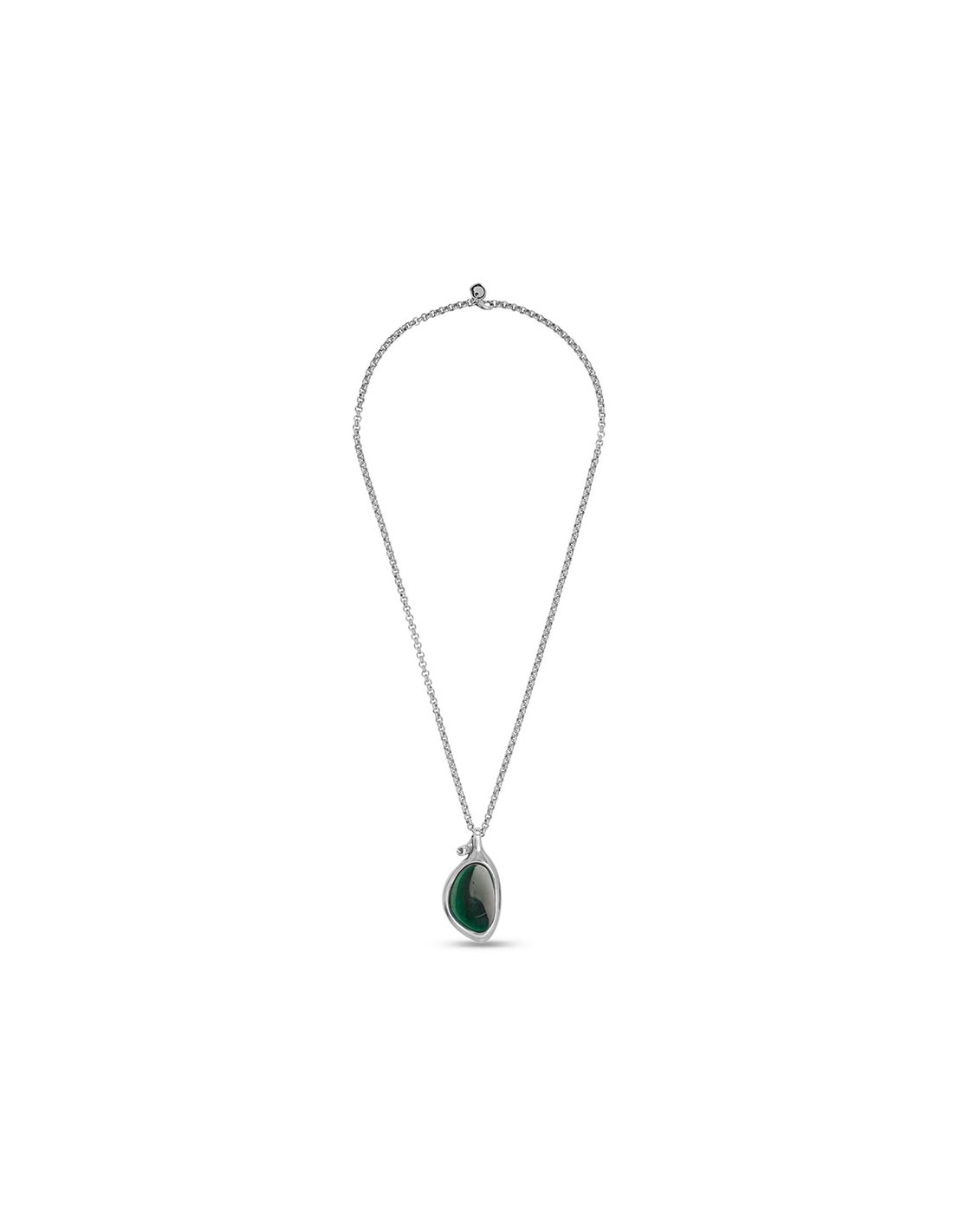 Collar largo en cadena de metal bañada en plata, con original pieza colgante terminada en cristal artesanal de Murano, pieza diseñada para la colección BOTANIC SENSE. Un diseño con toda la personalidad de Ciclón, hecho de manera artesanal 100% en nuestras instalaciones de Madrid.