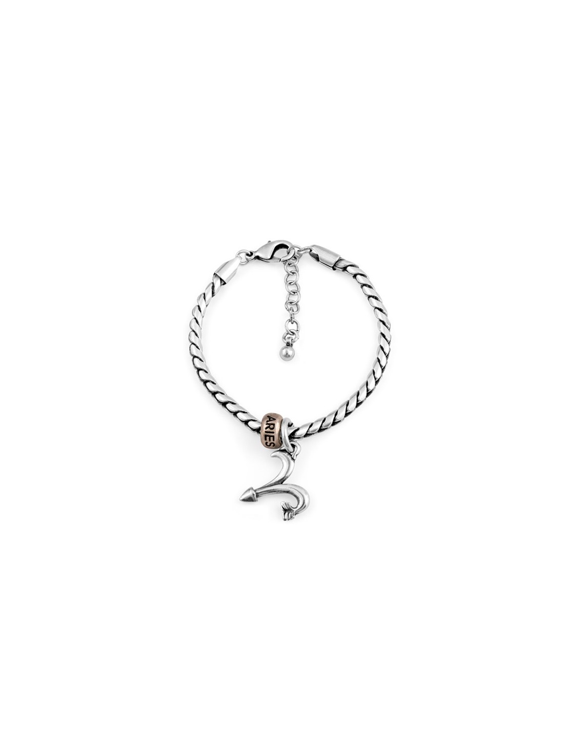 Pulsera en cadena serpiente de metal bañada en plata, con aro grabado de metal bañado en Oro Rosa y motivo Horóscopo.