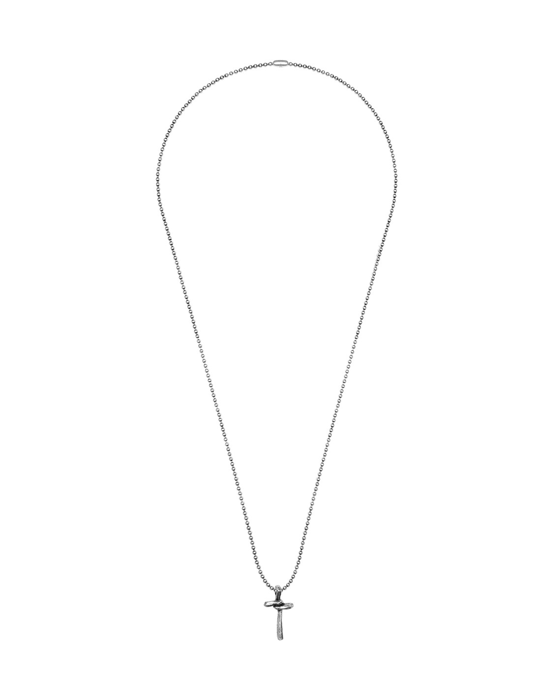 Collar de hombre Cruz con cadena de bolitas en color plata de acero inoxidable.